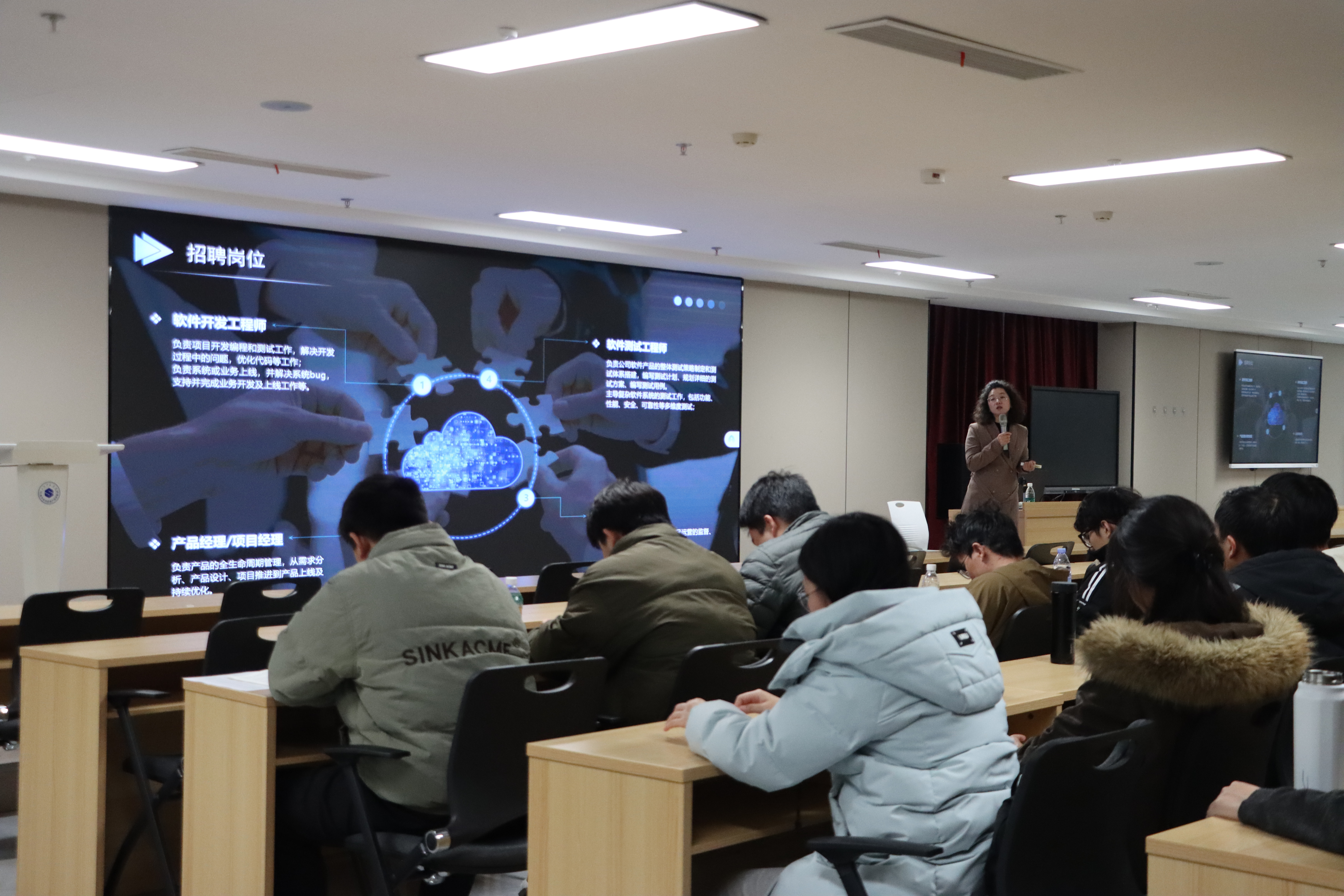 宣讲会上,总经理孙美华围绕六角星科技的发展现状与未来规划展开分享。她介绍,公司深耕人工智能科技领域,凭借技术创新与团队优势在行业内稳步发展,致力于为员工提供良好的成长平台。