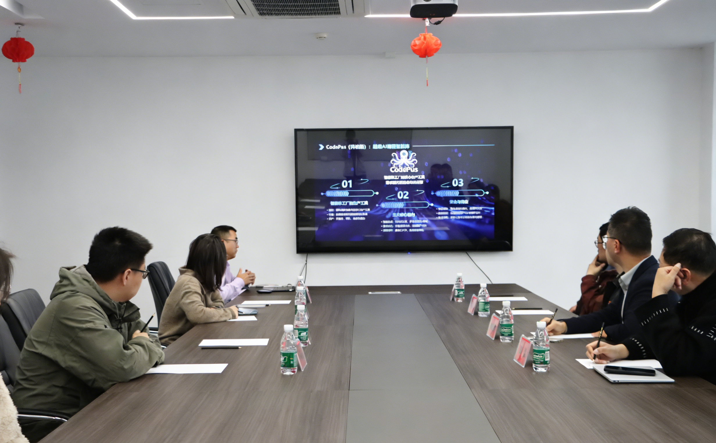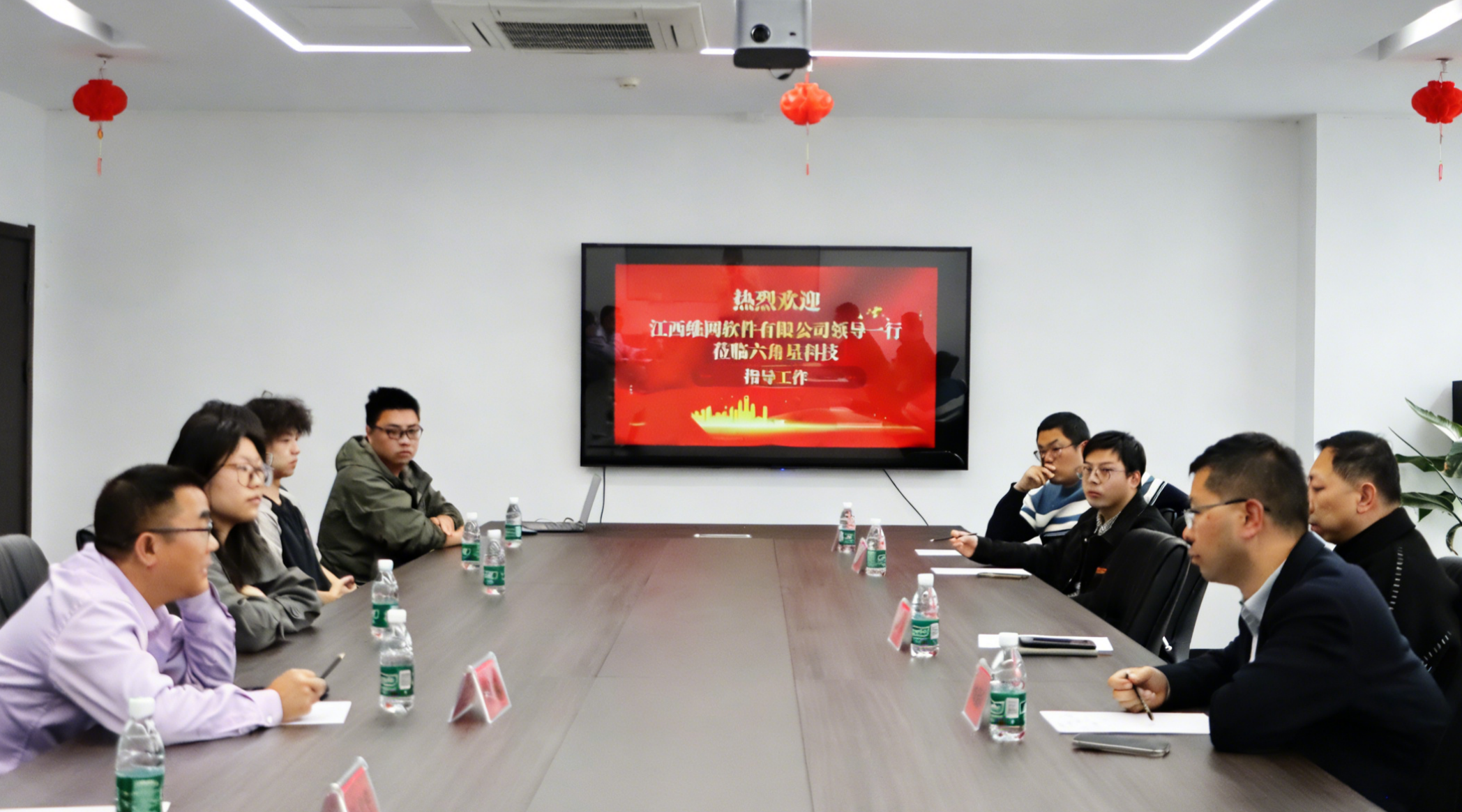 当日上午,在六角星科技董事长付福前和总经理孙美华的陪同下,江西维网软件有限公司领导一行参观了六角星科技的办公环境及研发中心。参观结束后,双方移步至公司会议室进行沟通交流。