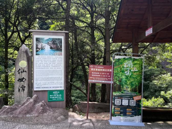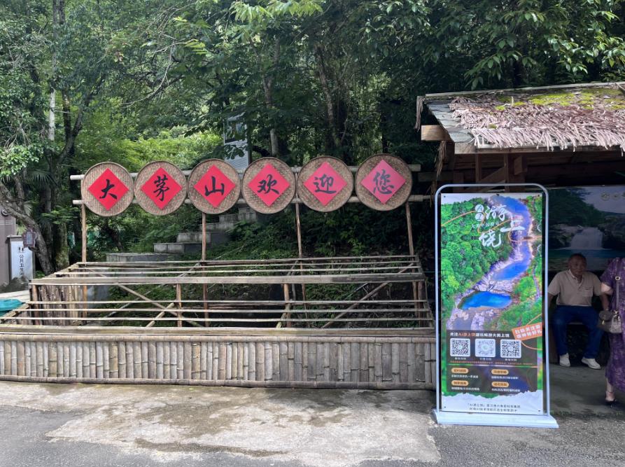 AI游上饶的专属标识与智能服务展架也已在大茅山景区入口、观光车售票处及观音瀑、仙女潭等核心景点完成部署。