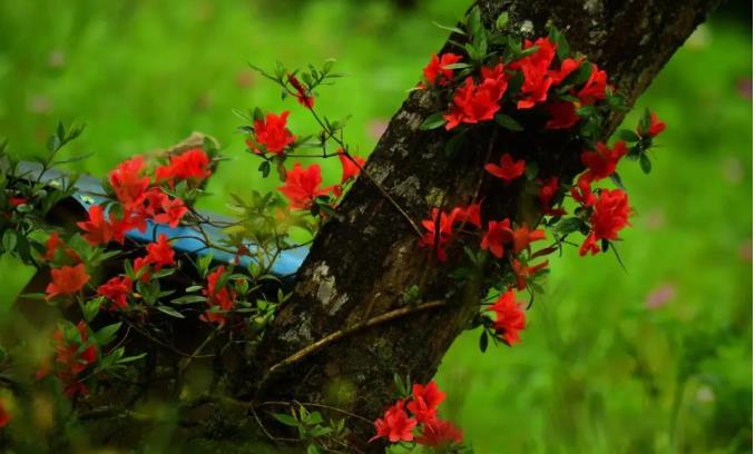 春日,漫山遍野的杜鹃花次第盛开,红粉交织,将山峦装点成绚丽的锦缎;