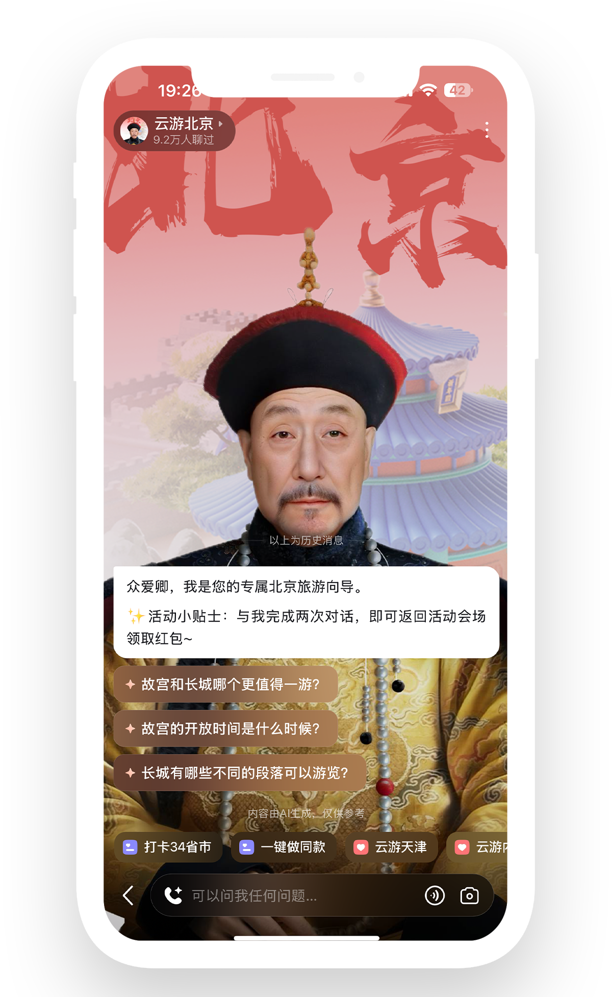 人工智能与文化旅游的完美融合,随时随地都能提供精准的场景识别和专业讲解。